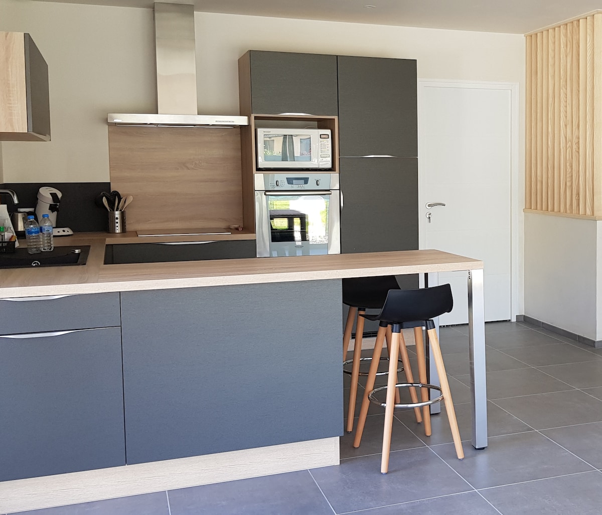 Nhà hiện đại mới – Thoải mái, sáng & gần biển Khám phá ngôi nhà một tầng mới, hiện đại và đầy đủ tiện nghi này, lý tưởng cho một kỳ nghỉ thoải mái trong một môi trường yên tĩnh và đặc quyền. Với diện tích hơn 90 m², hướng về phía nam, ngôi nhà có độ sáng rất đẹp trong suốt cả ngày. Nó mở ra một phòng khách lớn, thân thiện với một nhà bếp hiện đại được trang bị đầy đủ tiện nghi, được thiết kế để mang lại sự thoải mái cho bạn.