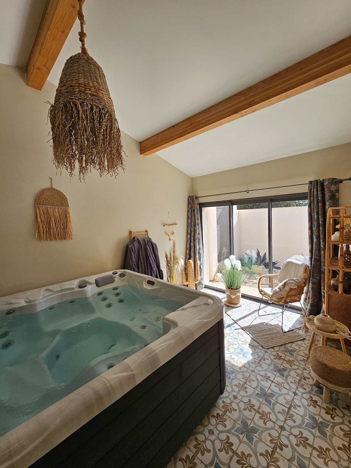 Đối với những buổi tối lãng mạn hoặc quyến rũ của bạn, kỳ nghỉ của bạn trong một khung cảnh bình dị cách Uzes 4 km. Bạn sẽ tìm thấy tất cả các dịch vụ để dành một khoảnh khắc dễ chịu và ca ngợi trong môi trường xanh ấm cúng và không tầm thường trong một không gian yên tĩnh và thoáng đãng trong chỗ ở yên tĩnh và thanh lịch này... giường cỡ king 180x200, jacuzzi trong nhà (spa), vòi sen XXL, bồn tắm La Mã ngoài trời để làm mới bạn (2mx1.50m).