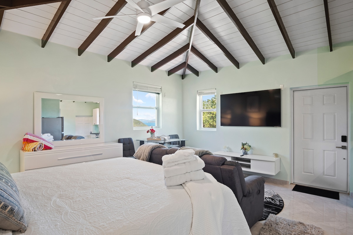 OUTSTANDING views of BVI's, ST John & Caribbean Blues! Spacious, tranquil & breezy Cottage perched on the top of Harmony Hill! Newly remodeled with YOU in mind & all the comforts of home. Privacy, million dollar views from all rooms, designated office/work area and 2 private decks and abundant closet spaces for all your needs. Indoor & outdoor dining. Centrally located on island & less than 10 min Magen's, Coki, Lindquist, Sapphire Beach. Take it easy at this unique and tranquil getaway.
