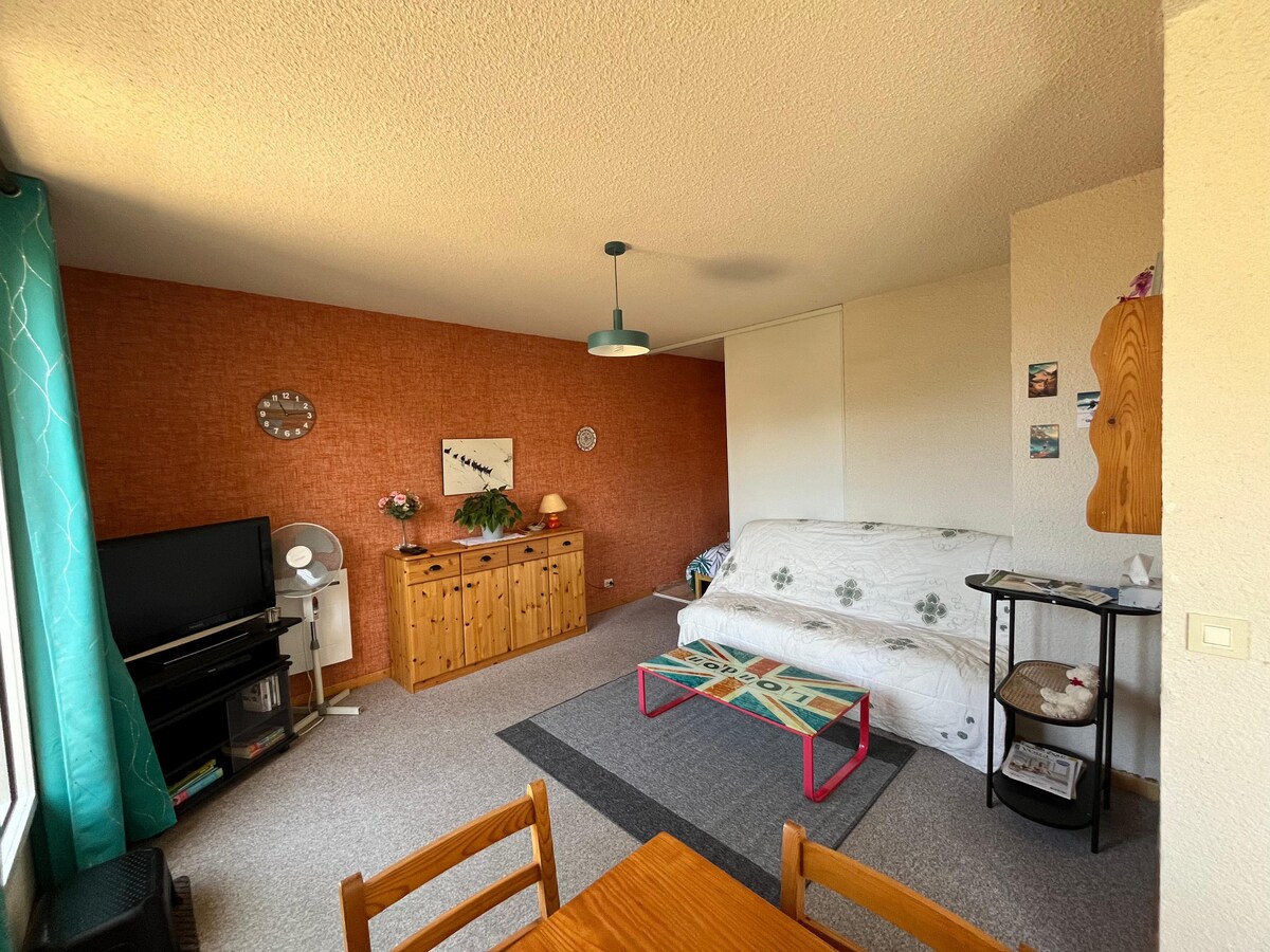 Căn hộ trong làng nhỏ với 1 phòng ngủ 1 giường x 140, phòng khách với giường sofa. nhà bếp độc lập được trang bị đầy đủ tiện nghi, phòng tắm và nhà vệ sinh riêng, ban công và Tropézienne. phơi nhiễm ở phía tây nam ,rất tươi sáng, quang cảnh núi non và hoàng hôn.. Ở tầng 3 nhưng không có thang máy. Bãi đỗ xe riêng trước tòa nhà. Các cửa hàng chính và nguồn nước 3 phút đi bộ. : máy rửa bát ~ máy giặt - máy nướng bánh mì. Senséo - tủ đông nhỏ TV và DVD Cũi em bé