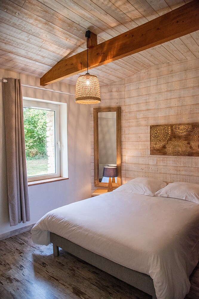 Tuân thủ quy trình vệ sinh tăng cường của Air BnB Nhà nghỉ thôn dã rộng 130 m2 được chuyển đổi thành một nhà kho cũ trải rộng trên 2 tầng. Tầng trệt: Phòng khách có bếp nhỏ và khu vực tiếp khách. Nhà vệ sinh riêng. 1 phòng ngủ với phòng tắm riêng (+ máy giặt). Tầng: 1 phòng ngủ với phòng tắm riêng + ngủ cho 2 trẻ em. Nhà vệ sinh riêng. Ngoại thất: 93 m2 Sân tiếng Anh với đồ nội thất sân vườn + BBQ + dù che nắng + tắm nắng. Không gian xanh không kín có thể tiếp cận ở phía nhà nghỉ thôn dã và phía nhà.