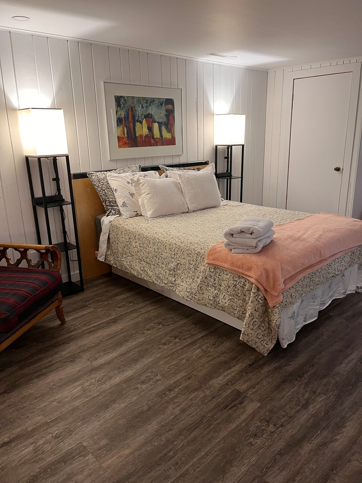 A two rooms private apartment with a king size bed. Strong wifi, smart tv, towels, clean sheets, refrigerator, portable induction cooktop (really efficient from Ikea), two heating plates, microwave, mini oven, pots and pan. There is also a sink beside the bed that might not appear on some pictures. Also access to a laundry and dryer machine in another room that you share with us, as we live in the same building. The actual bed is the one you see in the lasts pictures, still a king size.