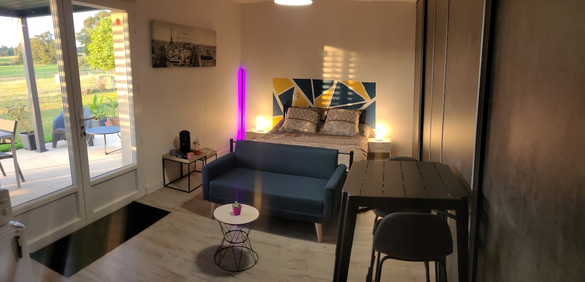Studio ở tầng trệt yên tĩnh trong một tiệm bánh cũ, với sân hiên riêng nhìn ra các cánh đồng và rừng cây xung quanh. Lý tưởng cho một cặp đôi theo chủ nghĩa tự nhiên đang tìm kiếm sự yên bình và tĩnh lặng của vùng nông thôn. Miễn phí sử dụng bể sục và phòng xông hơi (có sẵn quanh năm). Chủ nhà là thành viên của Liên đoàn chủ nghĩa khỏa thân (FFN) của Pháp.