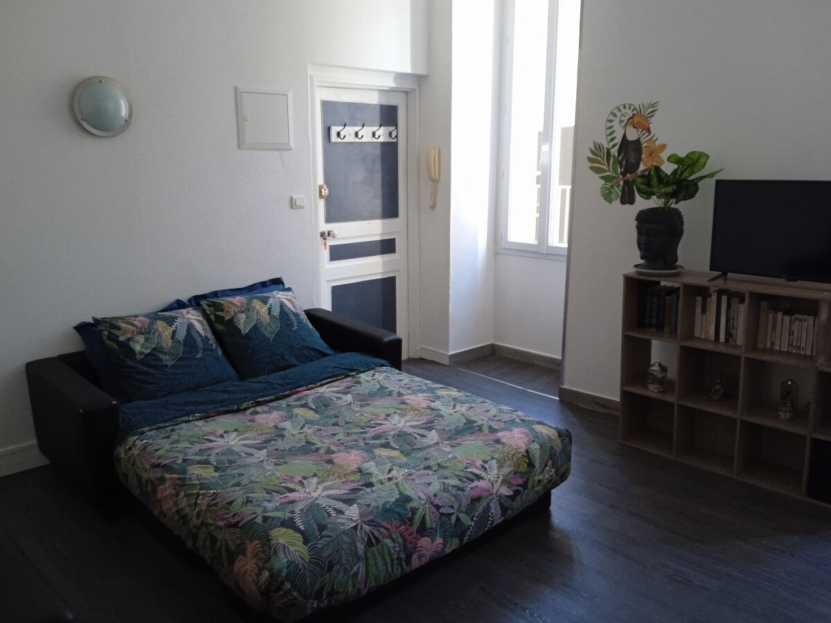 Ở trung tâm lịch sử của Saintes! Studio ban công với phòng ngủ riêng biệt thực sự (vách ngăn gỗ nổi) + sofa giường phòng khách. Sự thoải mái tối đa cho tối đa 4 người. Mọi thứ đều có sẵn. Vị trí hoàn hảo, bạn có thể đi bộ đến nhà hát vòng tròn La Mã, Cổng vòm Germanicus, nhà hàng và tất cả các cửa hàng. Không gian thư giãn đô thị của bạn Tận hưởng ban công riêng của bạn sau chuyến thăm văn hóa. Sự thoải mái hiện đại + vị trí đặc biệt = thời gian lưu trú thành công!