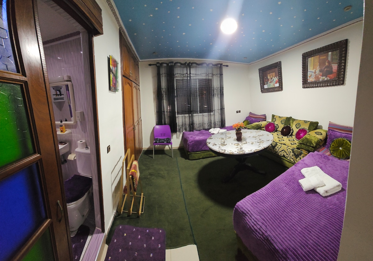 Một căn phòng sáng sủa ở trung tâm Rabat, lý tưởng cho du khách tìm kiếm sự chân thực, bình tĩnh và gần gũi. Nằm trong một ngôi nhà truyền thống, căn phòng mang đến sự thoải mái đơn giản và ấm áp, hoàn hảo để khám phá thủ đô Ma-rốc. Tận hưởng phong cách trang trí Ma-rốc điển hình, phòng khách ấm cúng và sân thượng đầy nắng được trang bị theo phong cách Berber. Hoàn hảo cho khách đi một mình, các cặp đôi và bạn bè muốn trải nghiệm một trải nghiệm thực sự trong medina, tiếp cận qua tầng một