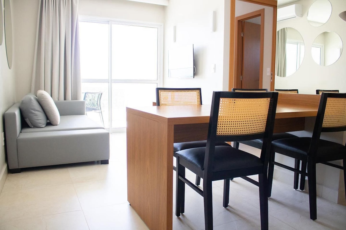 Căn hộ theo mùa với tầm nhìn ra biển, hồ bơi và/hoặc thành phố tại Salinas Exclusive Resort. Chỗ ở cho tối đa 7 người. 1 phòng suite với 1 giường đôi; 1 phòng ngủ với 2 giường đơn; 1 Phòng khách với 1 ghế sofa/giường lớn. 1 Phòng tắm xã hội Nó có ban công tích hợp, nhà bếp và phòng khách, TV, điều hòa, lò vi sóng, minibar và dụng cụ. Wi-fi trong căn hộ và khu vực giao lưu.