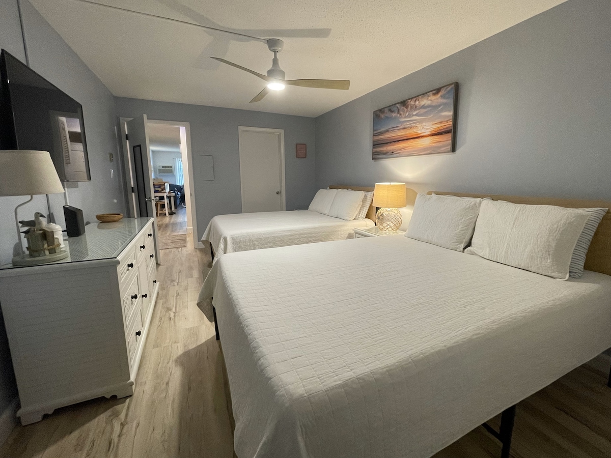 Bước ra bãi biển! Căn hộ chung cư được cải tạo hoàn toàn, sáng sủa, hiện đại, sạch sẽ với tầm nhìn ra ban công đại dương. Vị trí yên tĩnh của thành phố North Ocean với khoảng cách đi bộ đến các nhà hàng, xe buýt, 7-11, sân golf mini, rạp chiếu phim, công viên, v.v. Thiết bị và đồ nội thất hoàn toàn mới. Wifi miễn phí, Giường cỡ King, TV 60" & 40". Kéo ghế sofa Queen ra, phòng tắm đầy đủ hoàn toàn mới. Máy giặt và máy sấy trong căn hộ. Trạm cà phê Keurig, trạm sạc iPhone. Ban công riêng. Chỗ đỗ xe miễn phí.