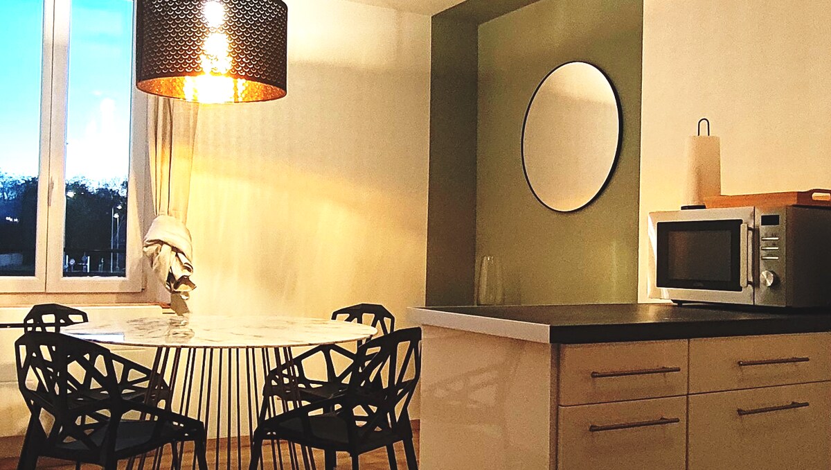 Trong một khu studio độc lập được tân trang. Bạn sẽ có tất cả tiện nghi bạn có ở nhà. Bếp đầy đủ tiện nghi, máy giặt, thậm chí internet . Bạn sẽ có thẻ ra vào cổng điện và xe của bạn sẽ an toàn trong bãi đậu xe kín hoàn toàn. Bạn sẽ cách trung tâm và ga tàu sncf vài phút.