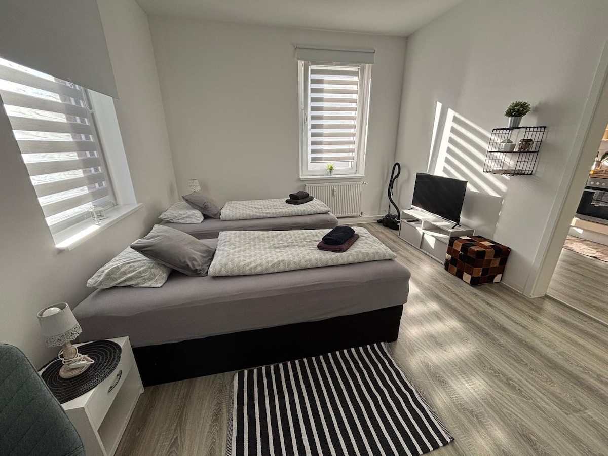 Căn gác nằm ở trung tâm thành phố Helmstedt, cách nhà máy VW ở Wolfsburg khoảng 25 phút. Nếu bạn đang tìm kiếm sự thư giãn sau một ngày làm việc căng thẳng, đây là nơi bạn nên đến! Bạn có thể thư giãn trên ghế sofa, trong bồn tắm hoặc với phòng xông hơi khô. Giải trí cung cấp rạp chiếu phim được trang bị đầy đủ với PS5 và các kênh truyền hình. Nhà bếp đầy đủ tiện nghi cung cấp nhiều khả năng. Thêm 25 € cho thú cưng một lần.