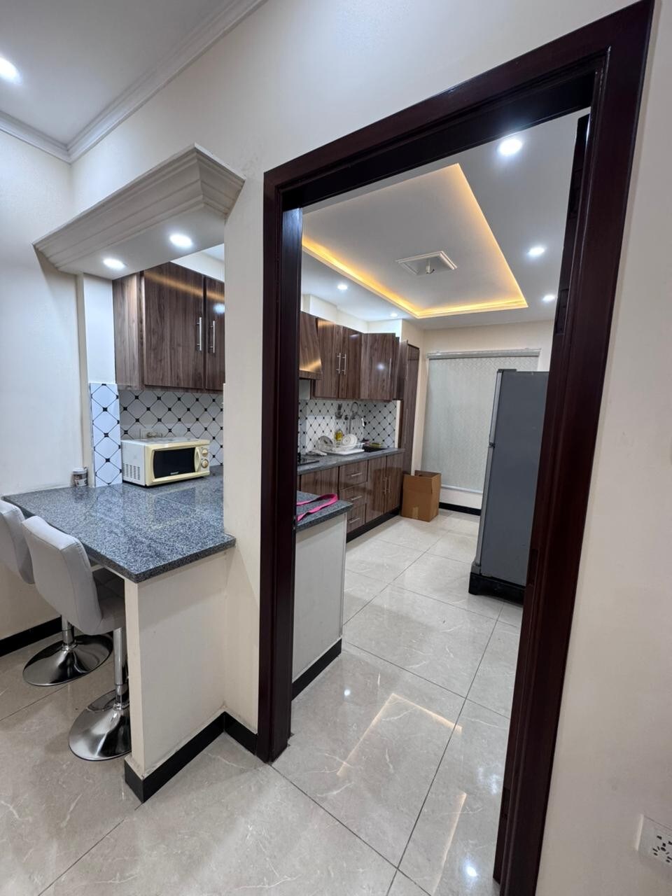 Ngôi nhà sang trọng 1 Kanal rộng rãi với diện tích hơn6.000 ft vuông. Có 4 phòng ngủ có phòng tắm khép kín, 2 nhà bếp được trang bị đầy đủ tiện nghi, khu vườn riêng rộng lớn và phòng khách xem TV ấm cúng. Lý tưởng cho các gia đình hoặc nhóm tìm kiếm sự thoải mái và riêng tư. Người giúp việc nhà có sẵn theo yêu cầu. Vị trí yên bình, an toàn — hoàn hảo cho thời gian lưu trú ngắn hoặc dài hạn. Cách McDonald, V Mall và các nhà hàng khác 20 phút.