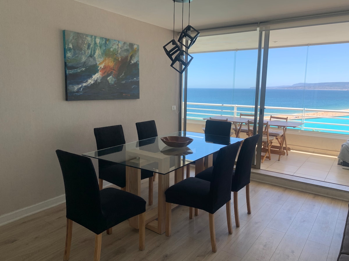 Nhà nghỉ dưỡng trong căn hộ chung cư riêng yên tĩnh. Nơi an toàn với hệ thống kiểm soát ra vào. Làm vườn và đỗ xe tuyệt vời. Phòng khách, bếp đầy đủ tiện nghi ( tủ lạnh, lò vi sóng, lò nướng). Phòng chính với 2 giường gồm 1,5 ô vuông và phòng thứ hai với 2 giường 1 vuông. Sân hiên lớn với tầm nhìn toàn cảnh đại dương. Nhà vệ sinh trang bị trang bị tiện Starlink Internet Điểm tham quan: - Nhà Pablo Neruda: 5 phút. - Bãi biển Punta de Tralca : 8 phút. - Bãi biển Algarrobo: 18 phút.