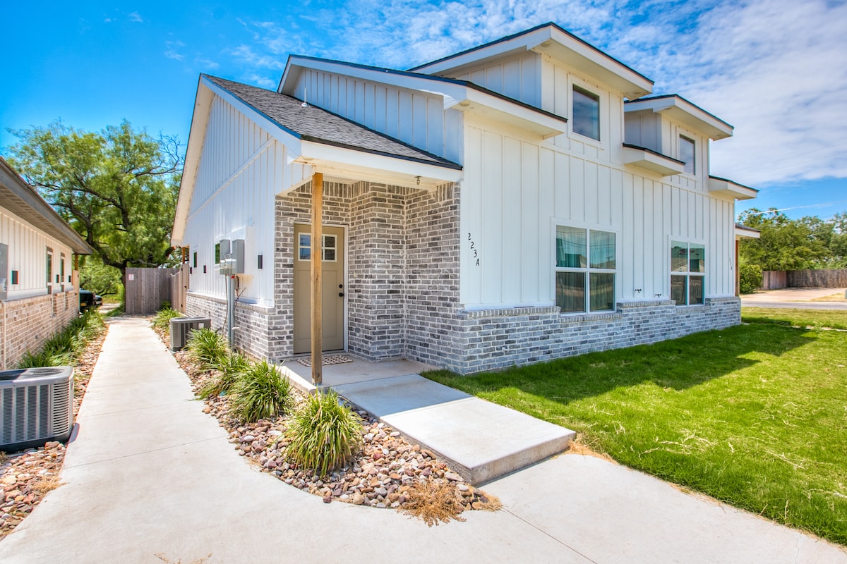 This stylish San Angelo townhome blends charm with modern comfort—perfect for a cozy stay. From the warm brick exterior and glowing evening lights that welcome you home, to the chic interior featuring vaulted ceilings, rich cabinetry, and every detail has been thoughtfully crafted. The open living area flows seamlessly into a modern kitchen with a stunning brick island and industrial-style barstools. This space is designed to feel like a boutique retreat with all the comforts of home.
