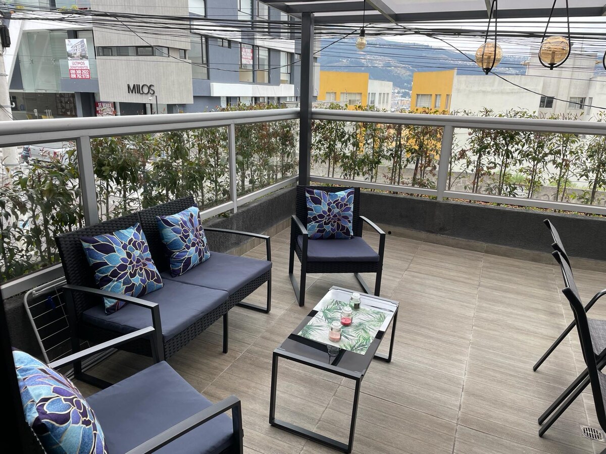 Căn hộ tuyệt đẹp với ban công lớn, ngay trung tâm khu thương mại và tài chính của Quito. Nó thoải mái, yên tĩnh, riêng tư và an toàn. Có một số trung tâm mua sắm gần đó: Quicentro Shopping, CCI, Plaza de las América, Mall El Jardín, cũng như Công viên La Carolina và Nền tảng tài chính. Xung quanh bạn cũng có thể tìm thấy các hiệu thuốc, siêu thị, nhà hàng, ngân hàng và rạp chiếu phim. Trạm tàu điện ngầm mới rất gần; trong 8 phút bạn có thể đến Trung tâm Lịch sử. Sân bay cách 40 phút đi xe.