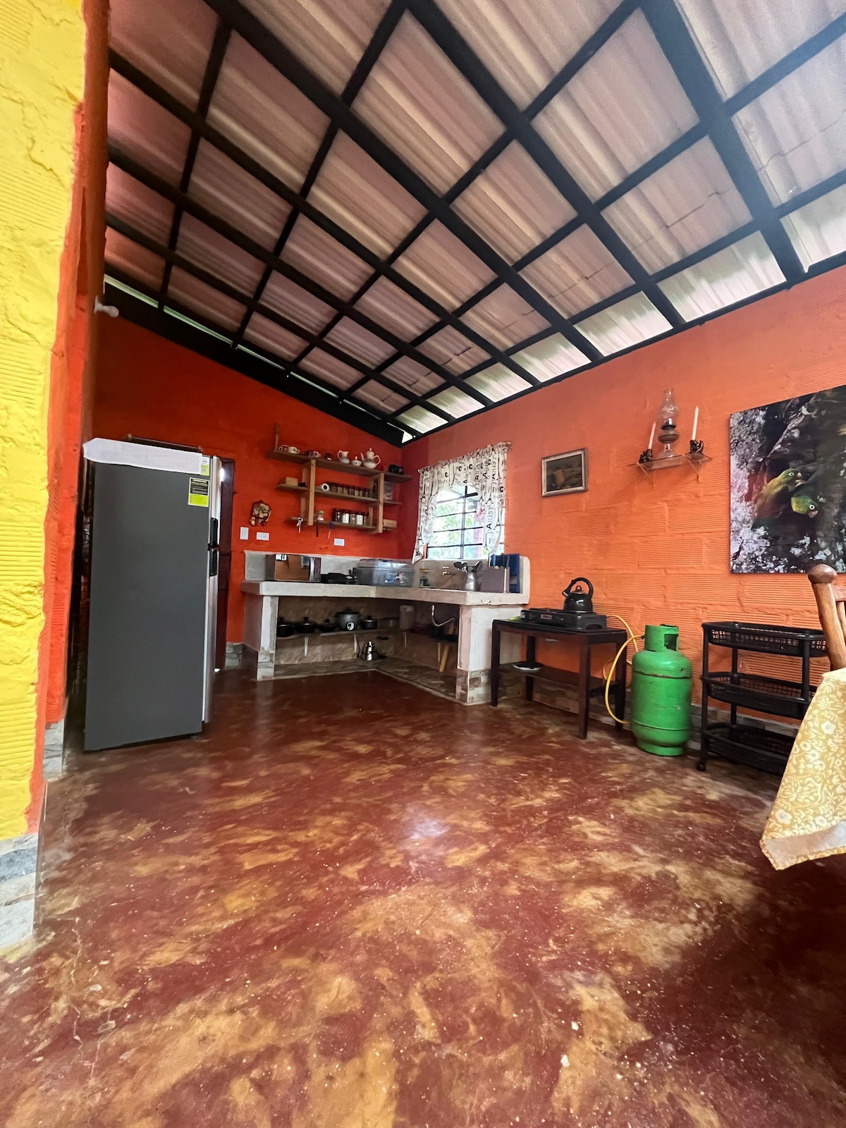 Hospedaje privado segundo piso de Casa bosque en San Carlos Antioquia a 2.5 horas de Medellín, con acceso para cualquier tipo de vehículo. Estilo vintage, totalmente equipada, con 6 camas, 2 baños y capacidad hasta para 9 personas adultas en cama + 2 colchon. Vista 360° al bosque, piscina, asador, barril grande, granja, lago de peces y kiosco. Clima cálido de día y fresco de noche. Ideal para familias, amigos, celebraciones y eventos. A 10 minutos del pueblo.
