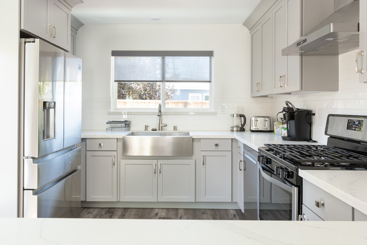 Chỗ ở sang trọng với phòng chờ kinh doanh của riêng bạn. Nơi tuyệt vời để một nhóm đi du lịch cùng nhau để chia sẻ ý tưởng xung quanh quầy hoặc thư giãn với 100" lò sưởi và 70" TV/ROKU. 4 phòng ngủ và 2 phòng tắm gần FB, G và Stanford với các thiết bị hàng đầu và thiết kế hiện đại thanh lịch. Một trong hai căn hộ của một căn hộ 2 tầng. Căn hộ còn lại là một phòng trong nhà/phòng cho thuê có lối vào riêng và không có trong nhà/phòng cho thuê này. Chúng tôi tuân thủ quy trình vệ sinh tăng cường của Airbnb, được phát triển với sự hướng dẫn của chuyên gia.