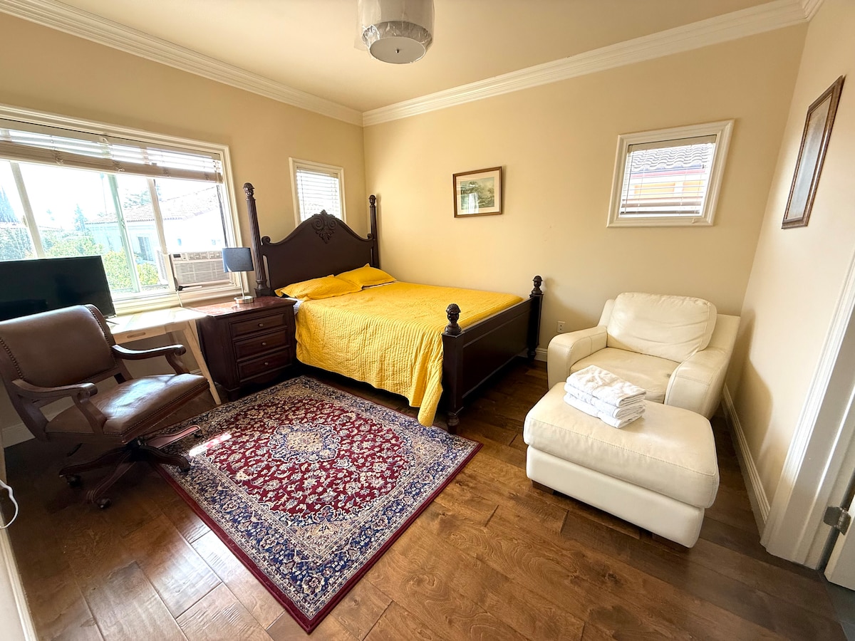 Đây là một phòng đơn nằm ở sân sau, Gần Phố cổ San Gabriel cách đó 0,5 dặm, Phố chính Alhambra 1 dặm, Thư viện Huntington 2 dặm, Phố thương mại Pasadena 3,5 dặm, Trung tâm thành phố Los Angeles 9 dặm, Universal Studios Hollywood 20 dặm, Disneyland 31 dặm. Phòng khách thoải mái và yên tĩnh với 1 phòng ngủ, 1 phòng tắm và 1 phòng thay đồ. Bạn sẽ không gặp bất kỳ ai khác trong thời gian lưu trú của mình. Nhà khách nằm trên một con phố dân cư rộng rãi và yên tĩnh, cách siêu thị 5 phút đi bộ. Phố cổ San Gabriel và phố thương mại Alhambra gần đó, có nhiều quán cà phê nổi tiếng và đồ ăn ngon để bạn có nhiều cơ hội lựa chọn. Nếu bạn thích đi bộ đường dài lên đồi, có một ngọn đồi và một con sông nhỏ gần đó, đó là một lựa chọn tốt.