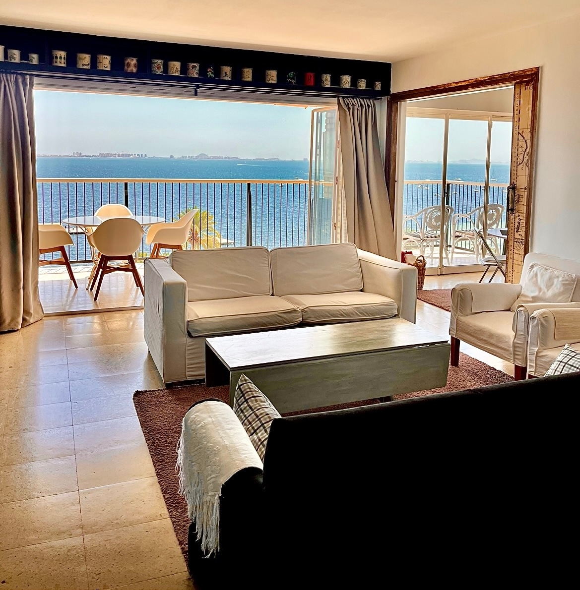 Luminoso y reacondicionado apartamento a 100 m del mar. Ideal para parejas y familias. El apartamento es un 3° piso con vistas al mar. Forma parte de una urbanización vallada. Sin ascensor. Situado al lado del Club Náutico de Santiago de la Ribera. En la zona podrás encontrar restaurantes y bares a 5 minutos andando por el paseo. Aparcamiento gratuito junto al edificio. Supermercados como Mercadona y Lidl a 7 minutos en coche. Otras tiendas de bienes básicos a pocos minutos andando.