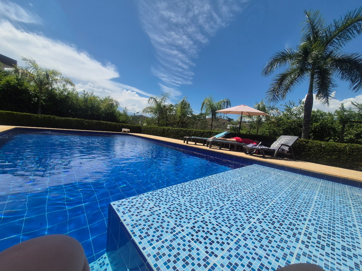 Que detalle¡¡¡ Un sitio para un plan de descanso muy familiar. Amplias zonas verdes, áreas totalmente independientes. Piscina, asador y kiosko, comodamente distanciados de la casa. Disfrute de la tranquilidad de un verdadero descanso con un clima soleado tropical y agradable. Si quieres estar confortable y descansar. Visítanos!!!! Los esperamos¡¡¡ para ser sus anfitriones. La tasa de aseo se encuentra incluida en la tarifa.
