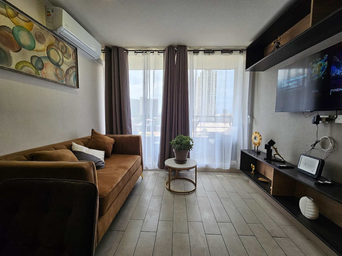 Tận hưởng, thư giãn và tìm hiểu Santiago. Căn hộ mới, đầy đủ tiện nghi nằm trong một khu dân cư cách Metro 7 phút và cách Sân vận động Quốc gia 1 dãy nhà. Nơi đây có 1 phòng ngủ và 1 phòng tắm, điều hòa không khí, khu vực giải trí cho trẻ em, bãi đậu xe riêng và an ninh 24/7; lý tưởng cho các gia đình, cặp vợ chồng, cặp đôi, bạn bè và những người phiêu lưu. Cách xa tiếng ồn và cách Sân vận động Quốc gia vài mét.
