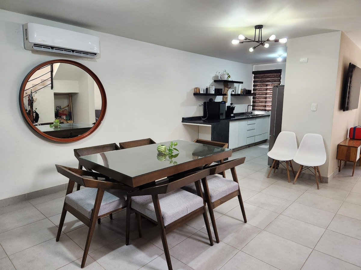 Ở Casa Blanca, ngôi nhà ấm áp, nơi bạn có thể nghỉ ngơi và làm việc trong sự yên tĩnh hoàn toàn, nó có vị trí rất tốt, thoải mái và có mọi thứ bạn cần. OXXO gần đó, công viên và nhiều nơi ăn uống, sushi, tacos, dogos, mex. thèm tất cả đi bộ trong chưa đầy 10 phút. các tuyến giao thông rất gần. Hệ thống làm mát là một cái gì đó đặc trưng, chúng tôi có 4 tấn sala và nhà bếp 2 tấn, 1 tấn trong mỗi phòng. Màn hình trong hab chính với truyền hình lửa và dịch vụ hấp