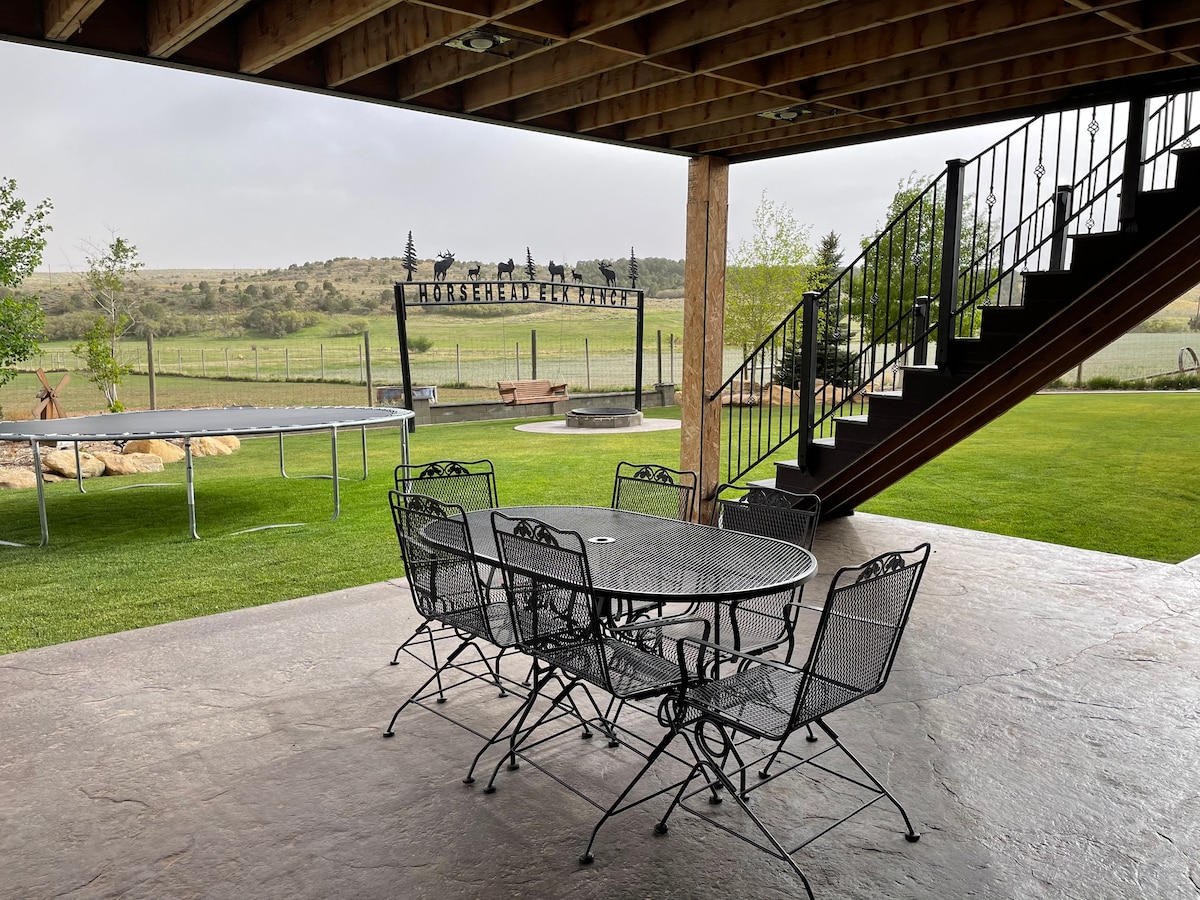 2100 sq. ft basement apt on 80 acres @ edge of town, in the middle of a domestic elk herd. Enjoy sitting around the fire, playing cornhole or watching the sunset all while the elk graze in the background. Walkout basement equipped with 6 beds & suited to fit up to 14 people. Includes a full weight room, movie projector, tanning bed, ping pong & pool tables, grassed yard, playset, outdoor patio, trampoline, fire pit, mini kitchen, private entrance, parking and is handicap accessible (on grass)