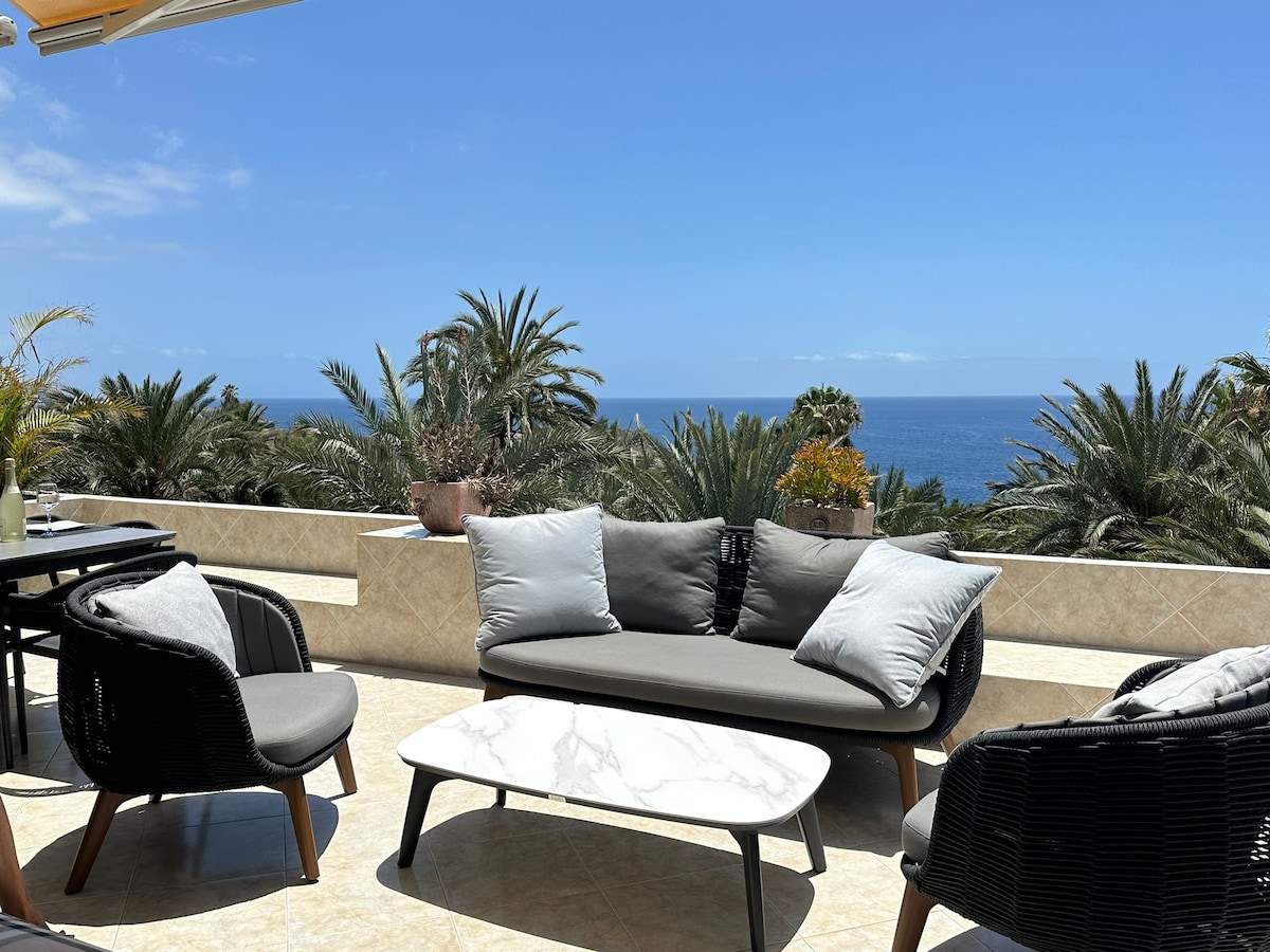 Duplex on the seafront Remodeled and redecorated October 2021 Two terraces with sea views. Outside furniture and awnings Communal pool Living, kitchen, bedroom, bathroom, toilet and laundry room Private garage Wifi Deckchairs and towels for the pool 5 minutes walk to the beach. Next to bars and restaurants Enjoy your holidays or work remotely, everything is ready to make you feel at home Very quiet urbanization Nice fishing village 9 km Los Gigantes and 20 km Playa Las Américas