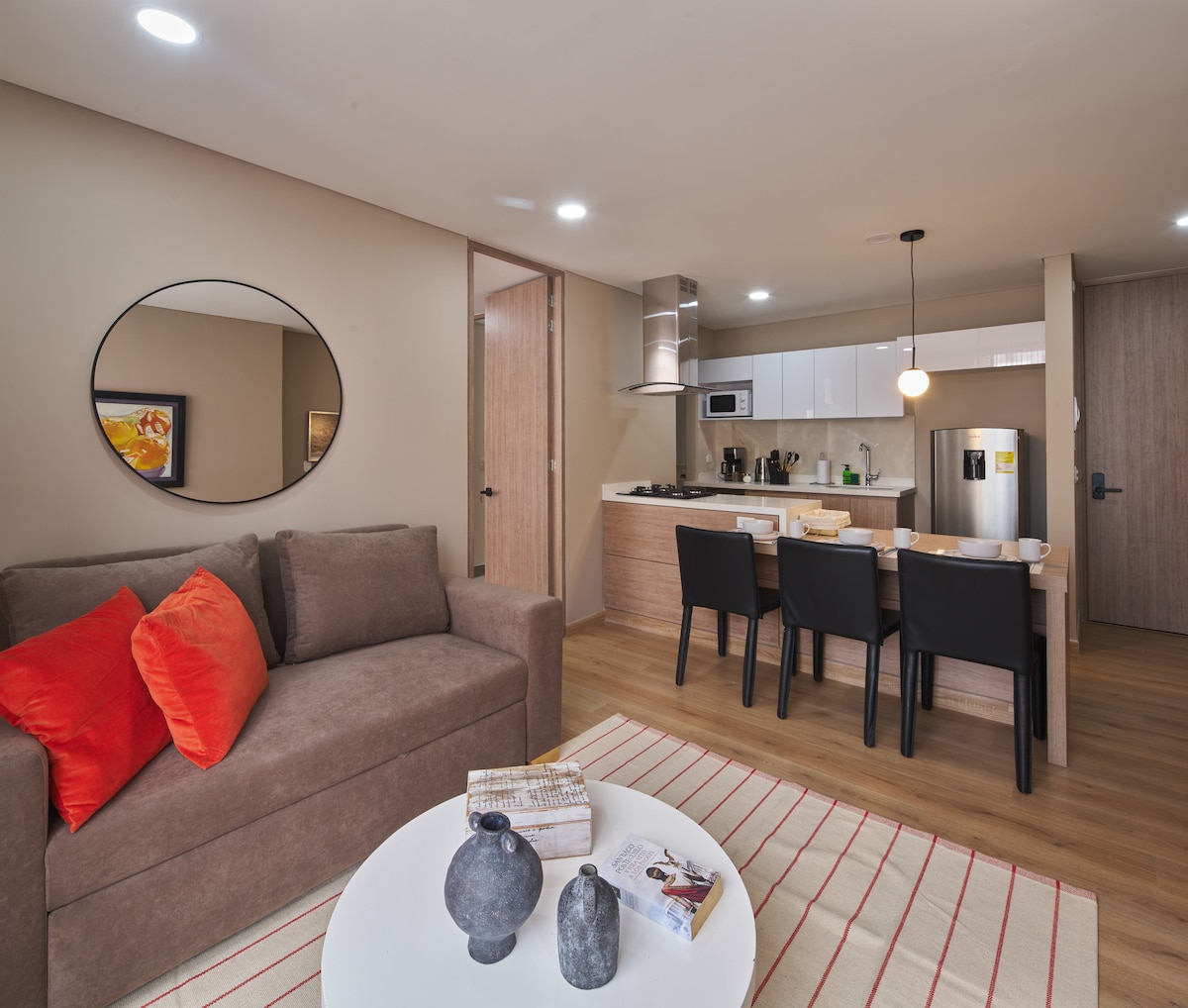 Moderno apartaestudio en los cerros orientales, al norte de Bogotá, jacuzzi con vista panorámica a la ciudad. Ubicado cerca del centro empresarial North Point, en un conjunto moderno, seguro y completo, con terraza BBQ, gimnasio, ping pong, co-working y zona de boxeo. Además, comercios y bancos cercanos. Un refugio de lujo en un entorno urbano exclusivo.