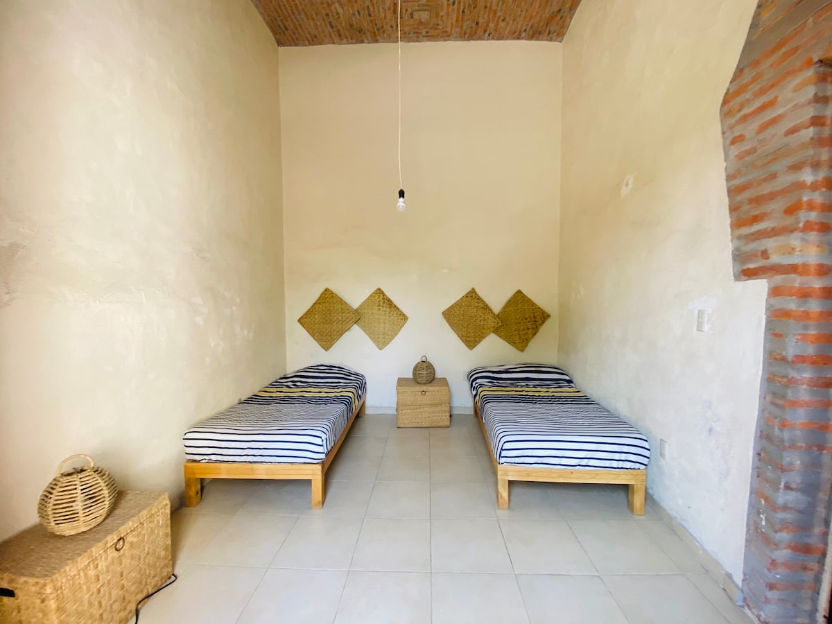 Phòng riêng trung tâm trong khách sạn giá rẻ với 4 giường tầng đơn cho 8 người có Wi-fi, khí hậu, phòng tắm riêng, khăn tắm, vệ sinh hàng ngày, khu vực chung, sân với cây ăn quả, bao gồm bữa sáng kiểu lục địa. Từ đây, di chuyển đến các địa điểm du lịch tại Huasteca Potosina để ngắm thác nước Tamul, Micos, Tamasopo xinh đẹp, tầng hầm của chim én, hang động. Lý tưởng cho gia đình hoặc nhóm bạn bè thích chia sẻ không gian và trải nghiệm.