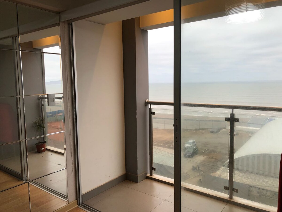 Căn hộ cho 2–3 khách, ở tầng ba, có tầm nhìn ra một phần đại dương từ phòng ngủ. Có 1 phòng ngủ với một giường đôi và một giường sofa trong phòng khách. Tòa nhà cung cấp tiện nghi giặt ủi, khu vực BBQ, khu trò chơi, phòng chờ WiFi và khu vực chạy bộ. Vị trí chiến lược, cách Costa Verde 2 phút và cách Miraflores và Barranco 15 phút. Camera an ninh chỉ ở các khu vực chung, không có bên trong hoặc đối diện với căn hộ. Tự nhận phòng 24/7. Đã bao gồm Amazon Prime Video. Lý tưởng cho các cặp đôi và làm việc từ xa.
