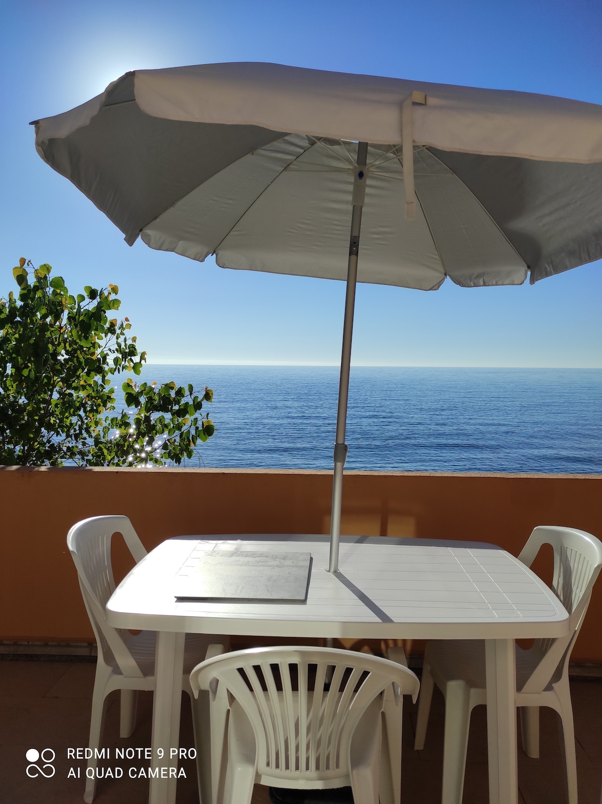 Appartement situé en bord de mer au premier etage d'un petit bâtiment. Il se compose d'un salon / salle à manger avec canapé lit, un coin cuisine, une chambre double, une chambre avec 2 lits superposés ideale pour des enfants, une salle d'eau et d'une terrasse avec vue mer.