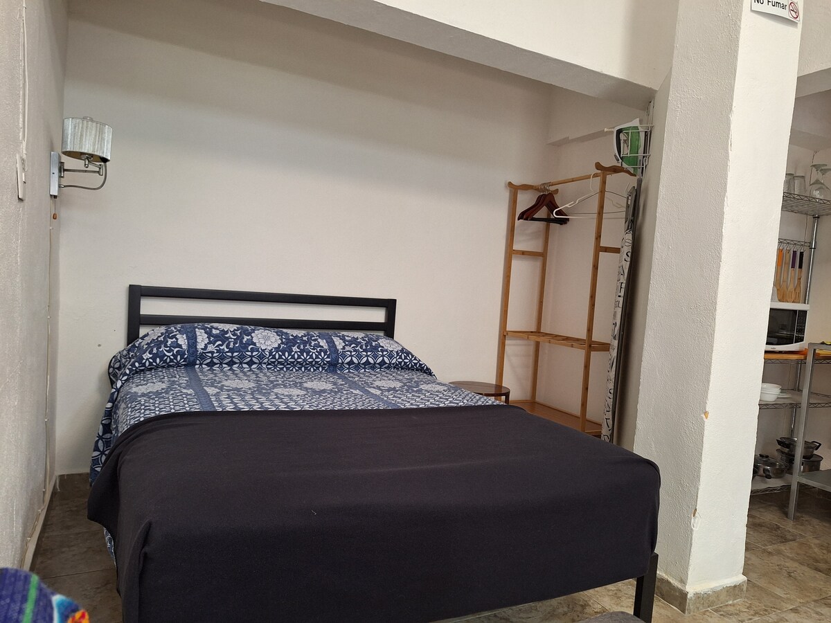 Cómodo departamento privado y amueblado que cuenta con cocineta (electrodomésticos, vajilla y utensilios de cocina), baño privado (toallas, jab y abanico de techo. Con todos los servicios incluidos y papel higiénico), closet (plancha y ganchos), cama matrimonial (almohadas, sabanas y edredón), mesa con 2 sillas, smart TV, aire acondicionado (frío/caliente)