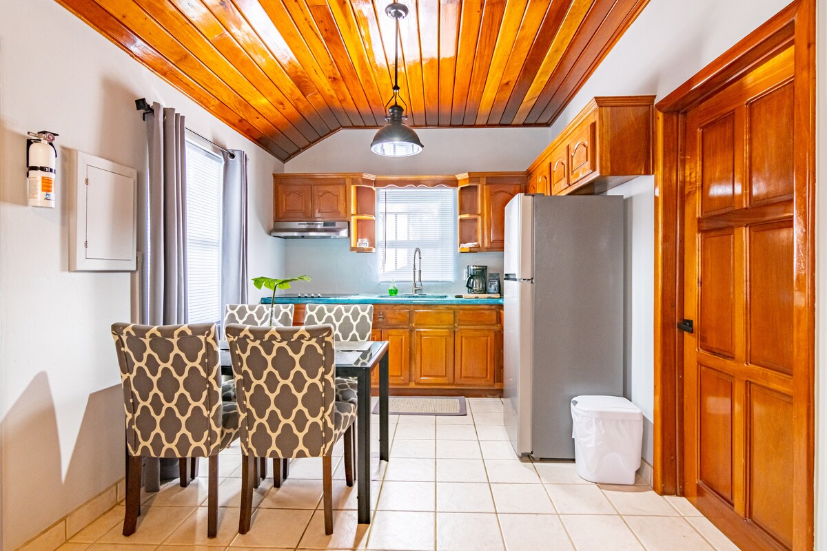 * Được chứng nhận tiêu chuẩn vàng * Những bãi biển cát tuyệt vời đang chờ đón bạn tại nhà nghỉ dưỡng rộng rãi (750 sq ft) của chúng tôi. Chúng tôi chỉ cách vùng biển Caribe và vùng nước màu ngọc lam vài bước chân! Wi-Fi miễn phí, thuyền kayak, ván chèo, xe đạp và dụng cụ lặn với ống thở! Có bếp đầy đủ tiện nghi, trong máy giặt và máy sấy, đầu đĩa DVD và nhiều lựa chọn DVD, TV (phát trực tuyến nhưng không có cáp), điều hòa không khí và quạt trong khu vực sinh hoạt và phòng ngủ.
