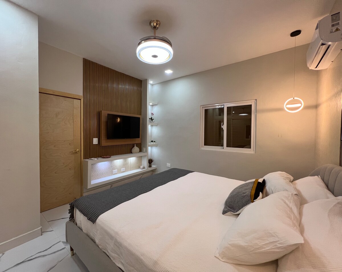 Trải nghiệm một không gian hiện đại và trung tâm, chỉ cách Sân vận động Tetelo Vargas và các siêu thị địa phương hai dãy nhà và cách các bãi biển xinh đẹp của Juan Dolio 15 phút. Căn hộ có điều hòa không khí trong cả phòng khách và phòng ngủ, có giường cỡ king thoải mái, trong khi phòng khách có giường sofa đầy đủ. Ngoài ra, bạn sẽ tận hưởng Wi-Fi, bếp đầy đủ tiện nghi và khu vực giặt ủi, được thiết kế để bạn có thời gian lưu trú thoải mái và khó quên.
