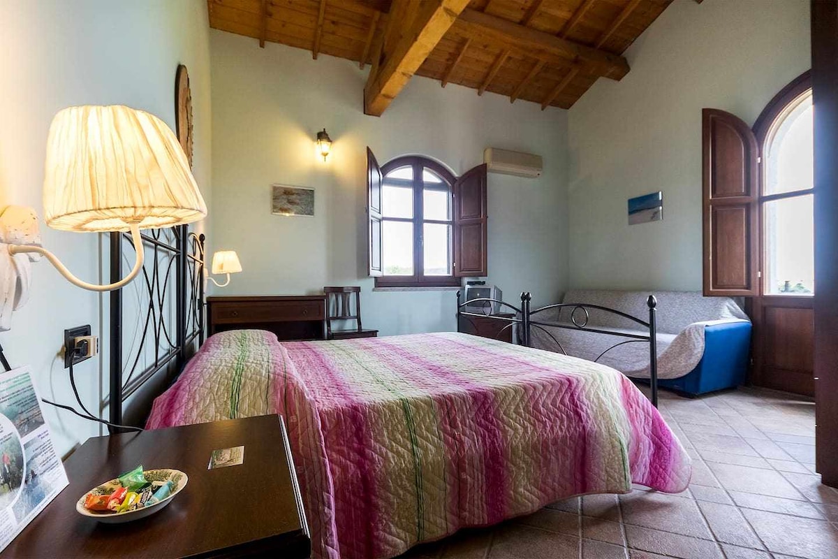La camera Alba si trova all'interno di una struttura immersa nella natura e vicino al mare Alba perchè la sua esposizione è verso il sorgere del sole. Silenziosa , confortevole e spaziosa con il bagno in camera. Wfi veloce piccolo frigo e televisione. Fuori dalla struttura troverete angoli preziosi per prendere il sole , passeggiare o stare all'ombra e scambiare piacevolmente idee con altri ospiti . ed una cucina in comune ma super comoda