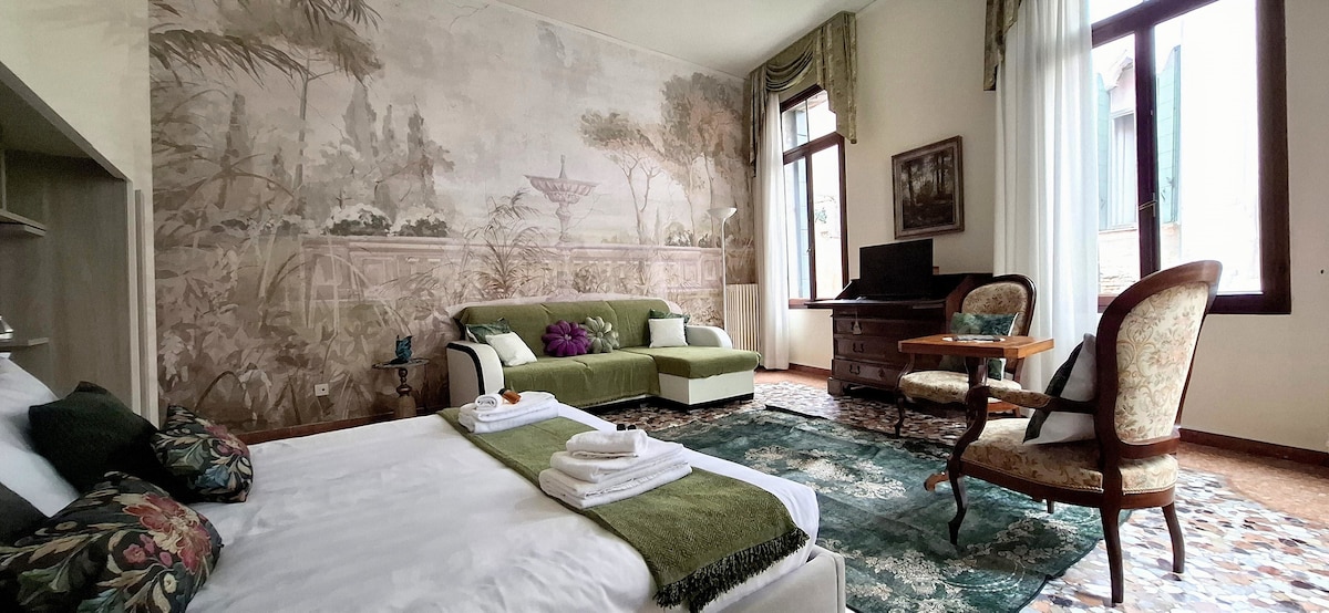 Thư giãn với một cuốn sách, ăn sáng và tối trong khi chiêm ngưỡng khung cảnh tuyệt vời của các tháp chuông và kênh đào của Venice, sống như một người Venetian đích thực ở khu phố điển hình nhất của Venice cách cầu Rialto, Ca' D' oro và San Marco vài bước chân trong một căn hộ được hoàn thiện với đồ nội thất và đồ trang trí do các nghệ nhân Venetian và Murano làm. Bạn sẽ cảm thấy như đang trải nghiệm bầu không khí tuyệt vời của những năm 1800 nhưng với tất cả tiện nghi của một căn hộ hiện đại. Đừng bỏ lỡ trải nghiệm tuyệt vời này