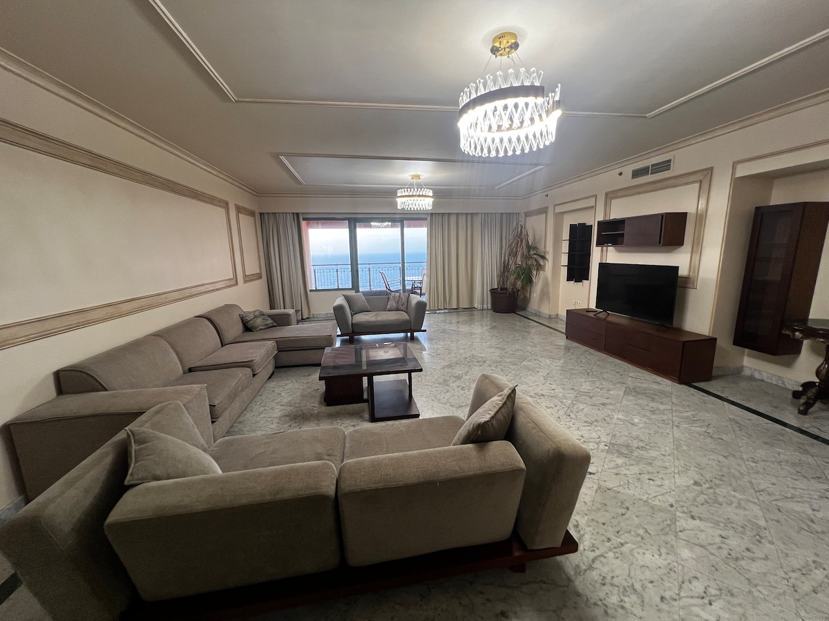 Căn hộ gia đình ở Khu vực San Stefano ở trung tâm Alexandria với tầm nhìn ra biển Địa Trung Hải. Căn hộ cách Trung tâm thương mại San Stefano 3 phút, khách sạn bốn mùa và Starbucks . 2 phút từ Fathallah, cửa hàng tạp hóa nổi tiếng mở cửa 24/7. Tòa nhà có an ninh 24 giờ. Căn hộ bao gồm 2 phòng ngủ chính, mỗi phòng có phòng tắm riêng, Lễ tân , nhà bếp và Ban công rộng 10 mét với tầm nhìn tuyệt vời ra biển. Căn hộ có 3 điều hòa nhiệt độ . Wifi , TV . Tòa nhà có bãi đỗ xe Nhà để xe có tính phí