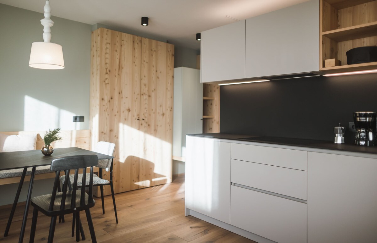 Căn hộ truyền thống lớn ấm cúng ở tầng một trên núi. 1 phút đi bộ đến xe buýt (trong xe buýt trượt tuyết mùa đông) và bằng xe buýt bạn có thể đến 2 khu nghỉ dưỡng trượt tuyết trong vòng 5-10 phút (Kronplatz 30 phút). Các gia đình hoặc nhóm bạn bè luôn được chào đón, chúng tôi có một khu vườn xinh đẹp và tầm nhìn ra núi đẹp. Các điểm tham quan dễ dàng tiếp cận bằng xe buýt (Burgtaufers, Bảo tàng Giáng sinh, Bảo tàng khai thác mỏ, Rolls khí hậu, Bảo tàng khoáng sản...) và cũng có nhiều tuyến đường đi bộ đường dài mà chúng tôi khuyên dùng
