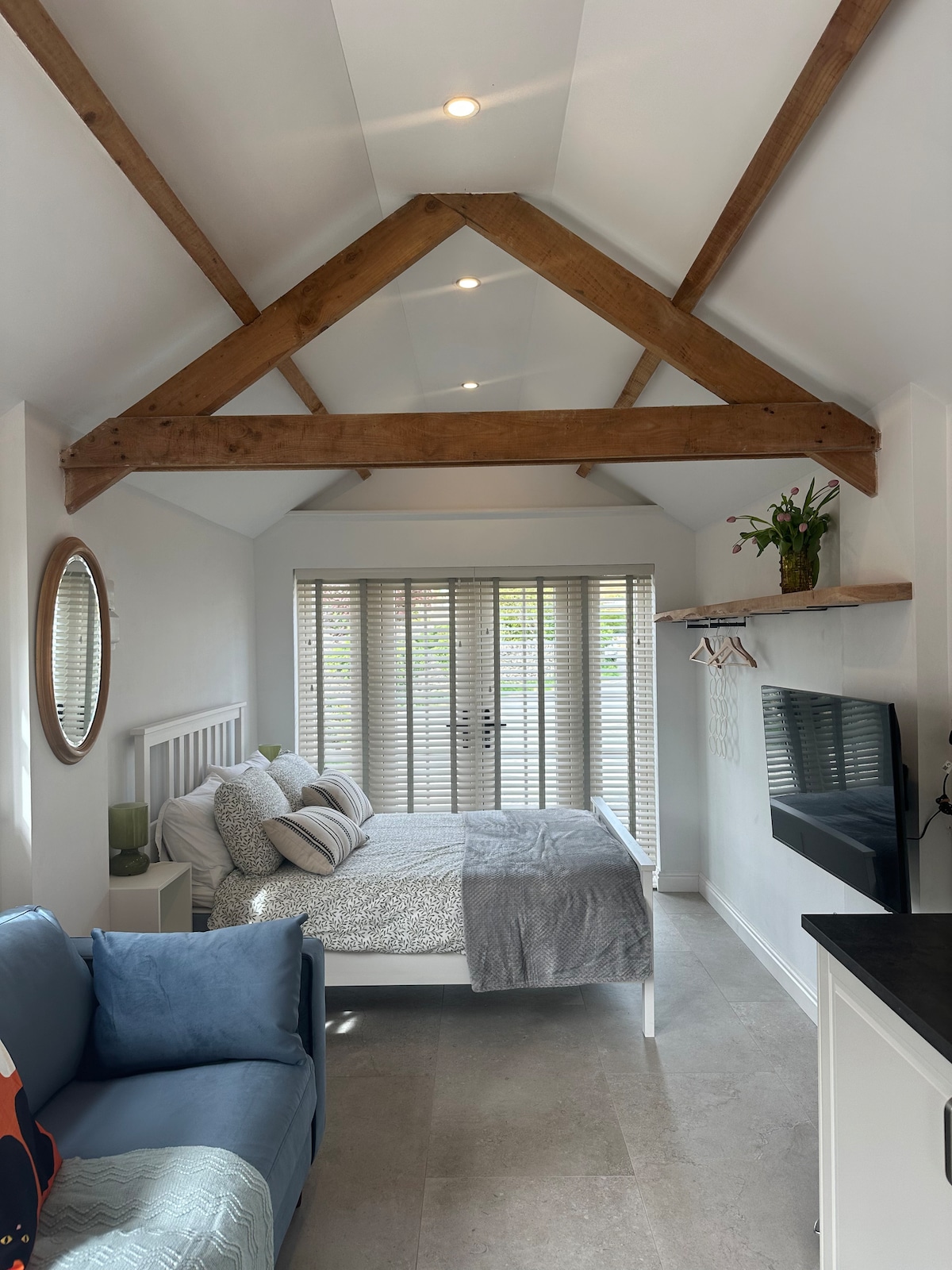 Charming spacious , good sized kitchen, shower room and bedroom/sitting room (sleeps 2, in a king size bed) area looking out over the garden with beautiful views over fields and Lake District Fells walking distance to our local pub, farm shop and national trust property Sizergh castle, 10 min drive to Kendal, 20 min Windermere, 15 min kirby lonsdale, 17 min cartmel racecourse. We are spoilt with the amount of restaurants/country pubs which all serve amazing food