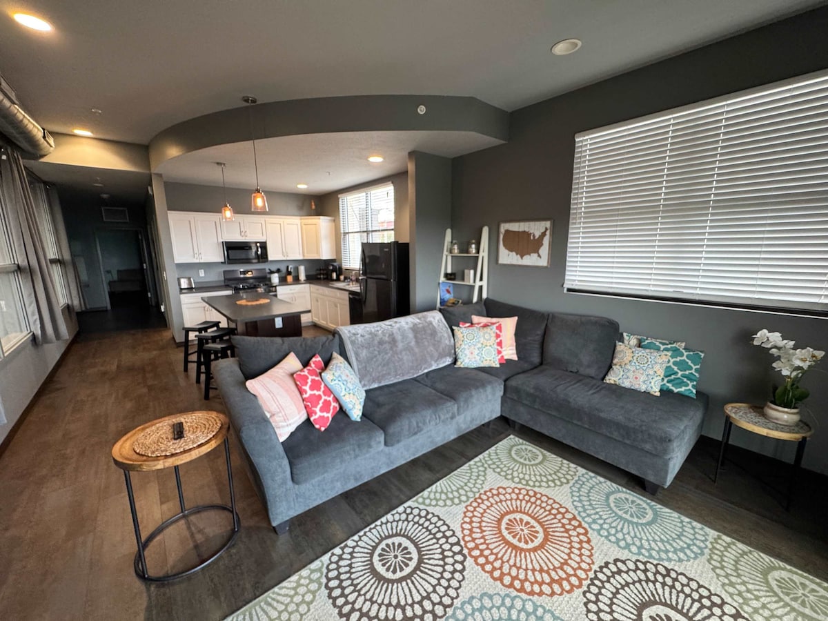 Nâng tầm thời gian ở của bạn lên một tầm cao mới trong căn hộ ven sông này! - 3 phòng ngủ - 3 phòng tắm đầy đủ - Phòng ngủ chính có giường cỡ King - Phòng ngủ thứ hai trong khu vực tầng lửng là không gian chung mở - giường queen, đầy đủ và 2 giường đơn - Trẻ em CHỈ CÓ phòng ngủ Mario theo chủ đề với trần nghiêng 5 feet - 2 giường đơn - Chỗ đỗ xe miễn phí 2 xe - Internet/Wi-Fi tốc độ cao - Nhà bếp đầy đủ đồ - Máy chiếu phim - 3 TV với thiết bị phát trực tuyến Roku - Nintendo Switch - Jukebox - Trò chơi điện tử - Hồ bơi/bồn tắm nước nóng Inground (theo mùa) - Phòng tập thể dục