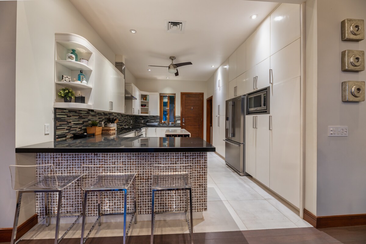 Phòng suite hai phòng ngủ sang trọng này nằm ở tầng hai gần hồ bơi với hai ban công riêng. Bao gồm hai phòng ngủ lớn với giường cỡ King và phòng tắm riêng lớn trong mỗi phòng. Nó có một khu vực phòng khách rộng lớn, bàn ăn và nhà bếp đầy đủ. Đó là khoảng cách đi bộ đến một bãi biển chưa phát triển hoặc bạn có thể tiếp tục đến Bãi biển West Bay nổi tiếng hoặc Westend Village. Dành cả ngày của bạn tại hồ bơi vô cực và bồn tắm nước nóng của chúng tôi. (Cầu thang có liên quan đến việc ra vào căn hộ này)