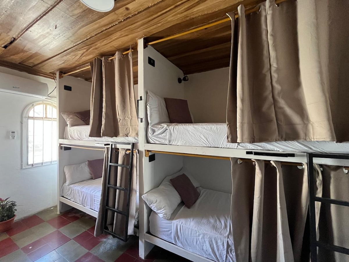 ¡Vive la experiencia viajera en el corazón de Santa Ana! Esta reserva es por una habitación privada para 2 personas Lo que encontrarás: Una cama queen con colchón confortable, sábanas limpias, toallas de ducha y almohada. Contamos con lockers individuales para tus pertenencias (trae tu propio candado) Aire acondicionado Ducha y baño en la habitación, televisión y WIFI