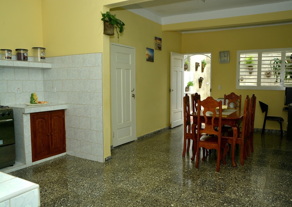 Toàn bộ nhà, lối vào độc lập, chìa khóa trao tay, sẽ là nhà riêng của bạn,!!. Với WIFI . Chúng tôi sống bên cạnh để hỗ trợ bạn, chúng tôi cung cấp bữa sáng phong phú và dịch vụ giặt ủi với chi phí bổ sung. Nó lớn, tuyệt vời. Sở hữu cho thuê dài hạn. Nó có hộp ký gửi an toàn. Đỗ xe miễn phí trước nhà hoặc bãi đỗ xe khác với giá rất rẻ vào ban đêm. Các chuyến tham quan đến những bãi biển đẹp của Cayo Santa María và đến Công viên tự nhiên El Nicho, bằng taxi tập thể rất rẻ.