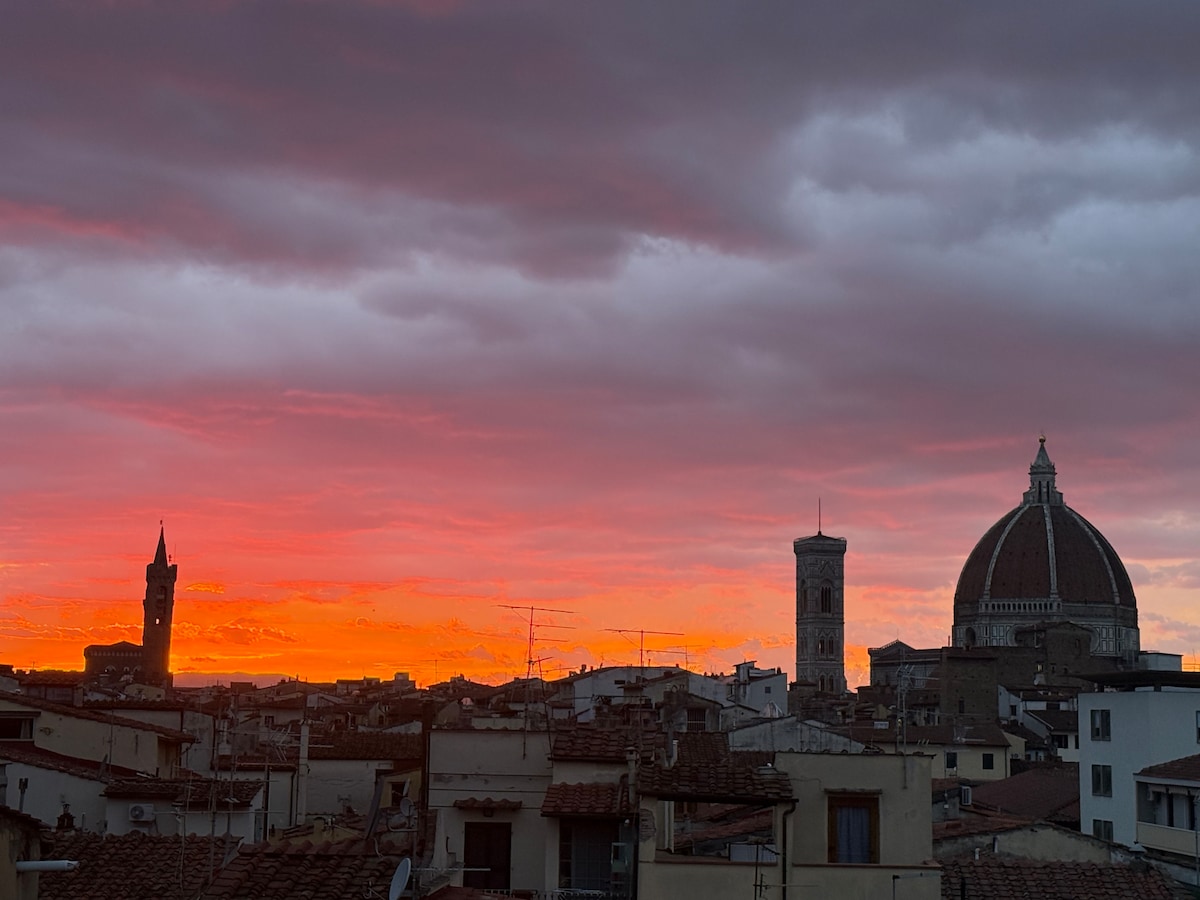 Căn hộ studio đầy nắng với sân thượng riêng và tầm nhìn bao quát ra các mái nhà, tượng đài và những ngọn đồi xung quanh Florence. Vị trí siêu đẳng ở một trong số ít các khu phố Florentine đích thực còn lại, trung tâm và chỉ cách các di tích và điểm tham quan chính vài phút đi bộ, nhưng trên hết, rất yên bình và tĩnh lặng. Một địa điểm thực sự khó quên để bắt đầu một ngày mới và dùng bữa dưới những vì sao vào buổi tối.