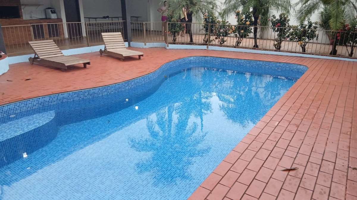 Relaxe com toda a família nesta acomodação tranquila. Casa completa com piscina, wi-fi, ar-condicionado em todos os quartos e sala, área de festa, 3 quartos, dois com camas de casal, sala de jantar, cozinha, pátio enorme, estacionamento para 4 carros, ideal para famílias que desejam ter um espaço inteiro. Centro de Itaipulândia, com segurança, perto de UBS, SAMU, Polícia Cível, Mercados.