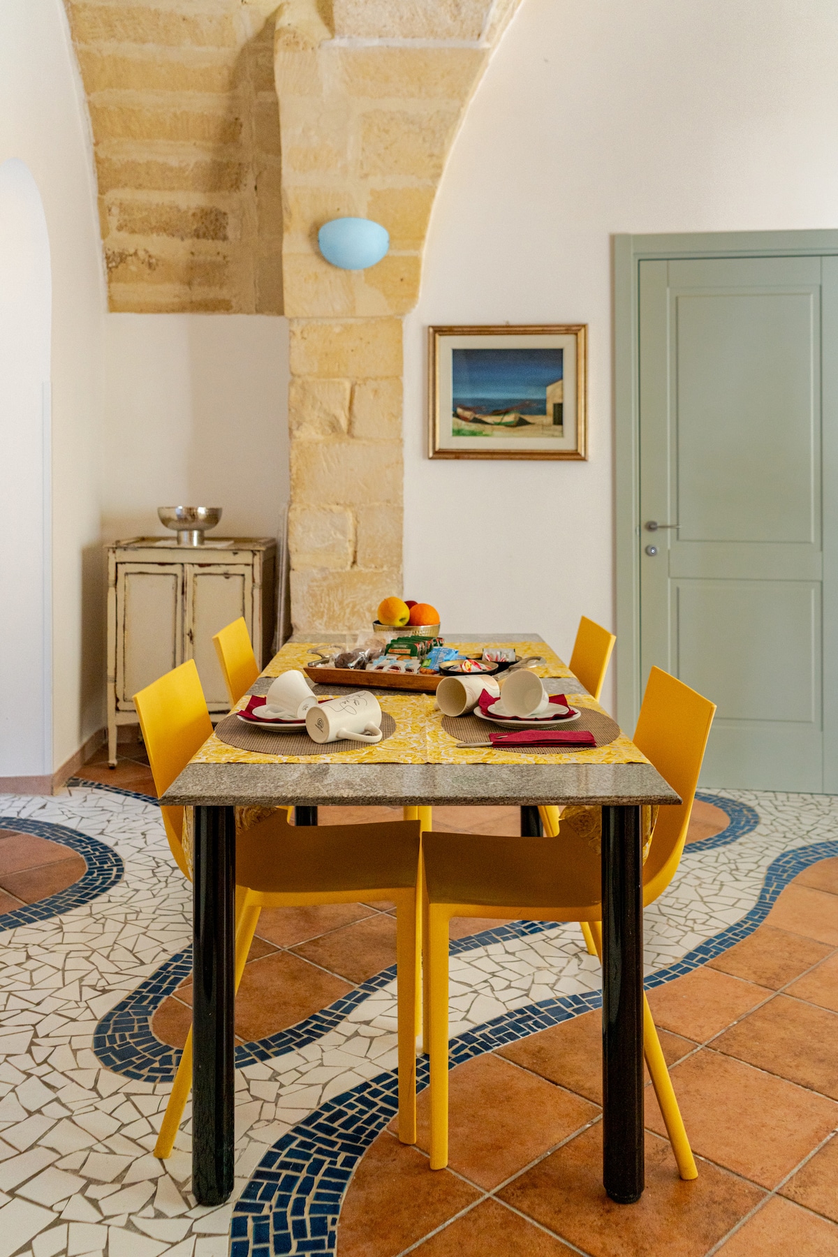 Phòng Suite độc đáo có sân trong . Tọa lạc tại cung điện Ý thế kỷ 15 ở trung tâm của borgo Carpignano Salentino, Apulia, Ý. Bạn sẽ tìm thấy nhà của chúng tôi ở trung tâm phố cổ gần các cửa hàng địa phương và tất cả các tiện nghi. Những bãi biển đẹp nhất của Salento và Thành phố Otranto chỉ cách căn hộ 10 phút. Vị trí hoàn hảo để khám phá miền nam nước Ý. Lý tưởng cho một kỳ nghỉ lãng mạn ở Puglia. Chúng tôi cung cấp tất cả những thứ cần thiết cho bữa sáng và đó là dịch vụ tự phục vụ
