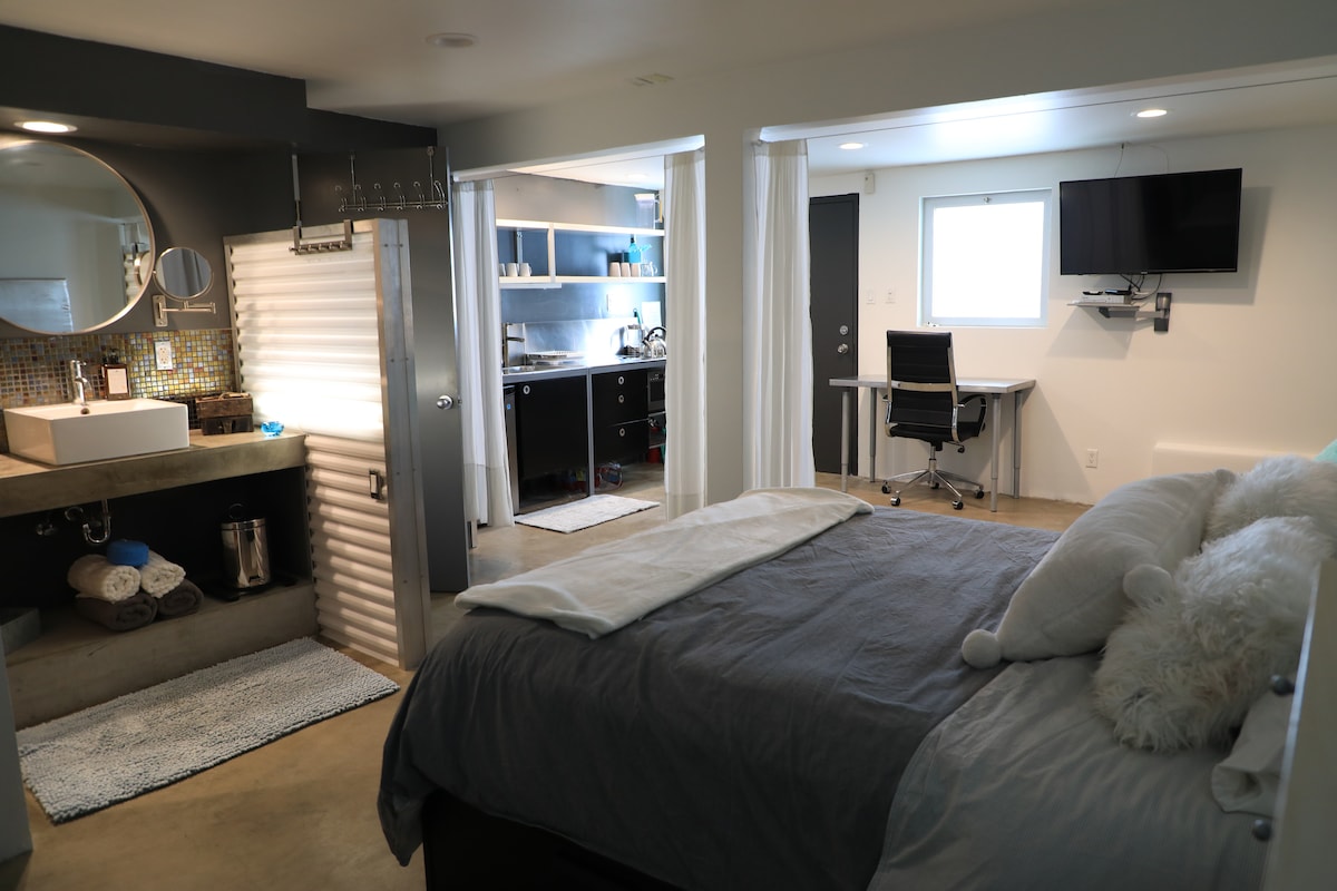 Chào mừng bạn đến với ốc đảo sạch sẽ, sang trọng của bạn ở Santa Monica! Với sàn bê tông đã hoàn thiện, trần nhà cao và cửa sổ lớn, nó có cảm giác thoáng mát được bổ sung bởi một phòng tắm tuyệt đẹp. Giữ sạch sẽ hoàn hảo và rất an toàn, hàng trăm đánh giá 5 sao của chúng tôi chứng minh sự cống hiến của chúng tôi để mang lại trải nghiệm tuyệt vời cho khách. Con mắt của chúng tôi về thiết kế mở rộng đến các chi tiết bạn sẽ khám phá trong toàn bộ không gian và chúng tôi luôn sẵn sàng trả lời các câu hỏi và lời khuyên. Chỉ cách Erewhon một dãy nhà!