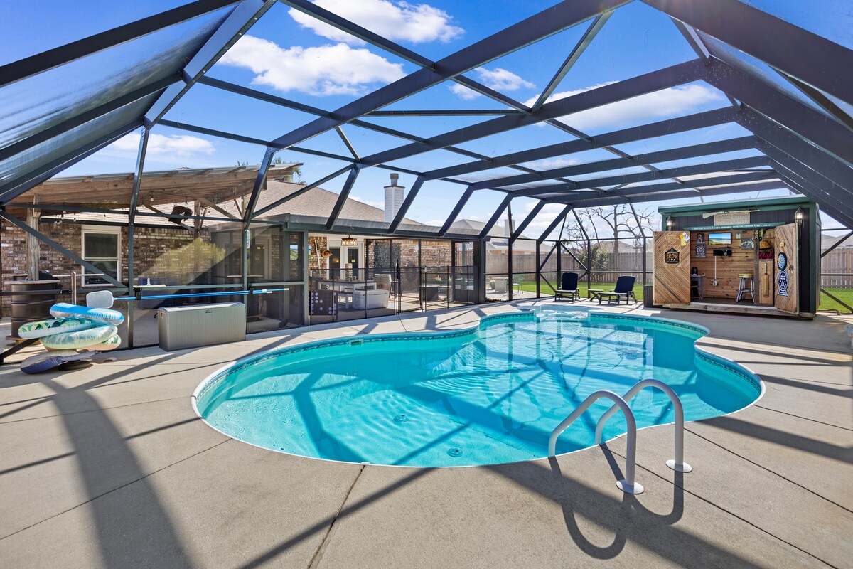 Chào mừng bạn đến với Phù thủy & Cướp biển! Ngôi nhà xinh đẹp này có 8 giường và có hồ bơi lớn với lanai được che chắn và hàng rào an toàn cho trẻ em. Thư giãn bên hố lửa dưới những vì sao trong khi bạn nhấm nháp rượu vang hoặc cà phê và để lại nút chai rượu vang của bạn trong chậu cây hương thảo, chúng tôi khuyến khích điều đó! Hãy vui vẻ chơi bóng bàn hoặc croquet ở sân sau trong khi bạn đốt BBQ và tận hưởng quán rượu lấy cảm hứng từ Anh cho các buổi tụ tập đêm khuya. Chỉ cách bãi biển Navarre 5 dặm, ngôi nhà này sẽ mang đến cho bạn những kỷ niệm khó quên.