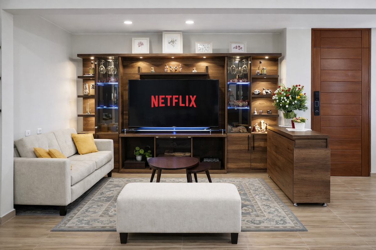 Chúng tôi là APARTI và thiết kế không gian hiện đại, an toàn và thoải mái để làm cho chuyến đi của bạn khó quên. Tận hưởng một căn hộ hai tầng rộng rãi ở San Borja với nhà bếp đầy đủ tiện nghi, Wi-Fi siêu nhanh, 2 TV thông minh và giường chất lượng khách sạn. Vị trí tuyệt vời, cách Ga tàu điện ngầm 2 dãy nhà, cách Trung tâm mua sắm Real Plaza Angamos 1 dãy nhà, với các nhà hàng, cửa hàng và siêu thị tốt nhất.