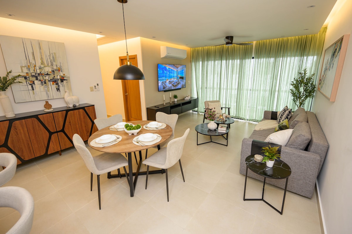 ⭐ YÊU THÍCH CỦA KHÁCH! Trải nghiệm sự thoải mái 5 sao thực sự ở Santiago với căn hộ được xếp hạng hoàn hảo của chúng tôi trong Residencial VALERA an toàn. Được thiết kế để làm việc và thư giãn, tận hưởng Wi-Fi tốc độ cao (150+ Mbps), không gian làm việc riêng và nguồn điện dự phòng đáng tin cậy. Sau một ngày dài, hãy nghỉ ngơi tại không gian có điều hòa không khí, sạch sẽ tuyệt đối của chúng tôi, chỉ cách các quán cà phê ẩm thực và các trung tâm kinh doanh lớn 8 phút lái xe. Hãy quên hồ bơi cộng đồng đi; đây là căn nhà đáng tin cậy, sang trọng của bạn.