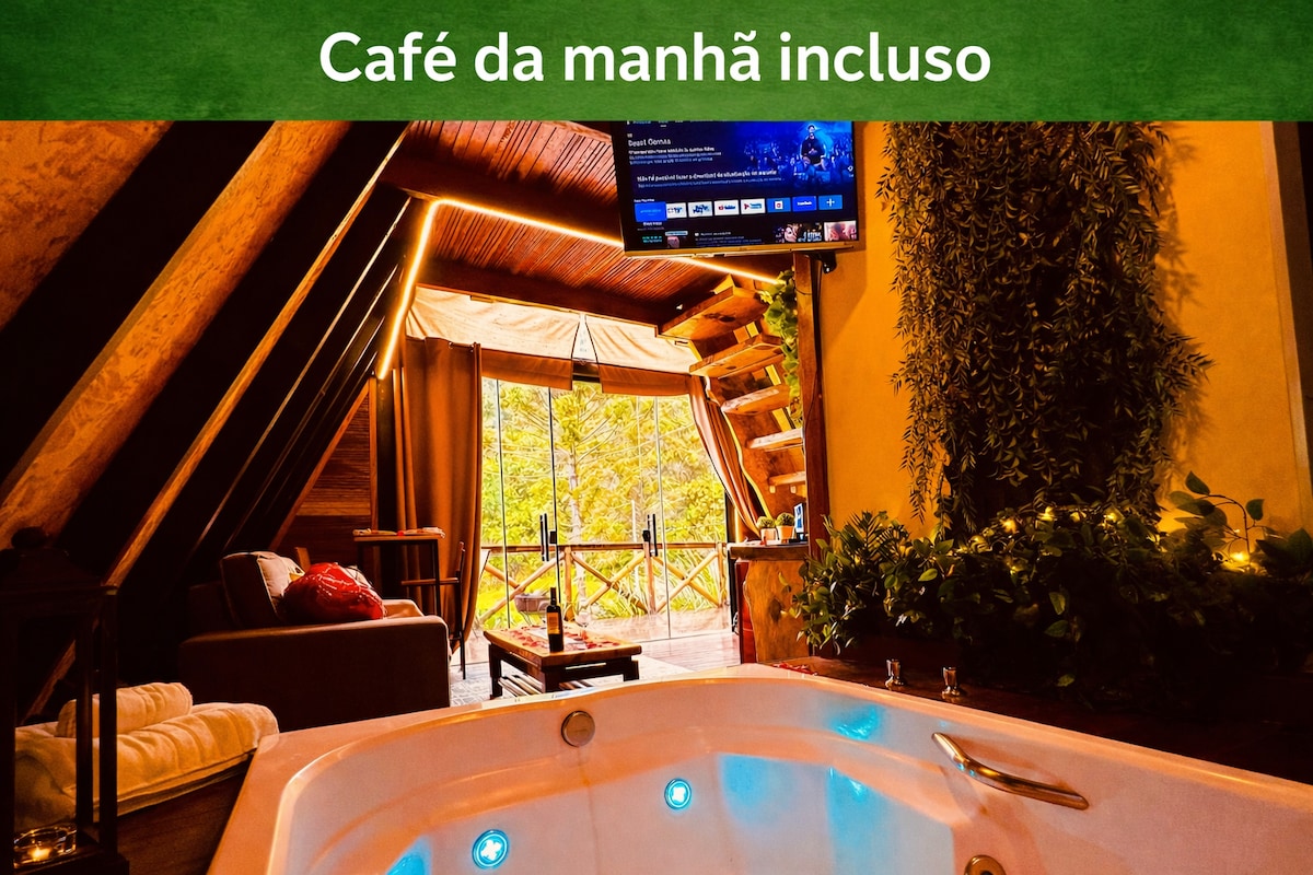 Khám phá "Mirante da Coruja", một nơi ẩn náu yên tĩnh giữa những ngọn cây, được xây dựng bằng gỗ pinho de riga khai hoang. Nhà gỗ chalet có tường kính này cung cấp sự riêng tư, thoải mái và tầm nhìn tuyệt đẹp. Được trang bị lò sưởi, boong riêng và sân thượng rộng rãi, nó trở thành bối cảnh hoàn hảo cho các lễ kỷ niệm đặc biệt và những khoảnh khắc thư giãn, kết hợp tính xác thực nghệ thuật địa phương với thiên nhiên xung quanh tráng lệ.